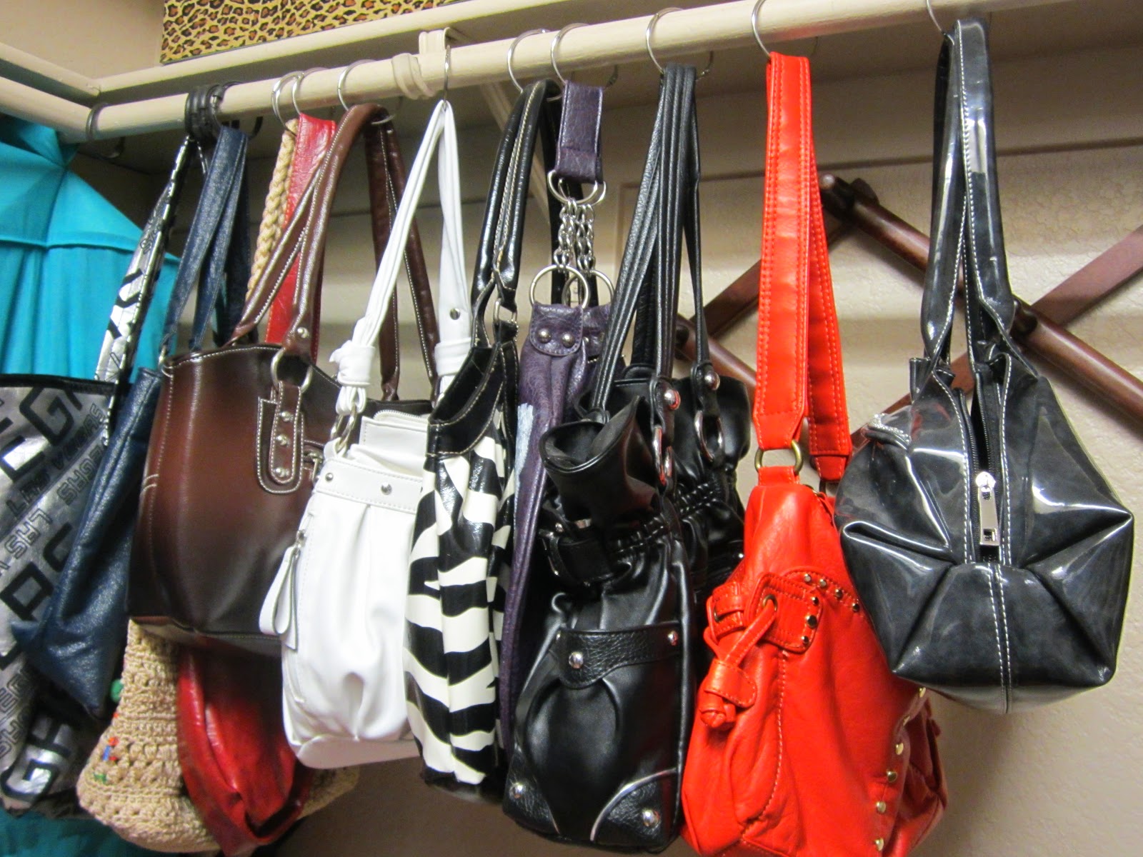 2. Use shower curtain hooks to hang your purses